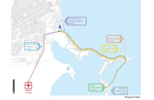 ‘Puerto Cancún’ offers the exciting possibilities of forging an ideal lifestyle. In a setting that opens a myriad of opportunities to the human imagination many things are possible, beginning with setting aside a moment to become one with the sea. At Puerto Cancún the Hotel & Residences mixed use complex brings a lush and innovative association of forms, styles and environments which converge into a singular lifestyle address. Within this new and vibrant urban context, an island paradise will be created to celebrate life in all its dimensions adding splendor and simple touches of elegance. To hold the parts together a well orchestrated urban design framework becomes the principal conduit by which spatial dimensions and experiences are choreographed to bring a level of sophistication unparalleled in the region.