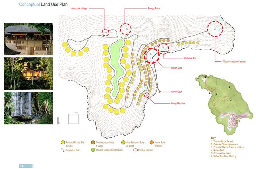 As the global psychographics are shifting to a more sustainable existence, the Cultural Creatives in the United States and overseas are looking for more experiential vacations and more educational experiences. The Transcendence property on Hans Lollik Island will be catering to those Cultural Creative individuals of the world seeking to change their lives and better preserve the planet. Due to the lack of alternative dining facilities on island, all the rooms will be sold inclusive of the airport transfer, meals, taxes and gratuities. Transcendence will be a non-tipping resort and, although additional services and/or beverages will be available and served, guests will not be requested to sign any individual checks as the honor system will prevail. Non-guest revenue is not anticipated at this property to any substantial degree due to its remote location from both St Thomas and St John - the two closest populations. The property will be fully sustainable and carbon neutral from opening day forward. We will also be attracting intellectual leaders to our Wisdom Institute which will be part of our wellness programs as well as the location where exceptional individuals in all human endeavors will gather.
